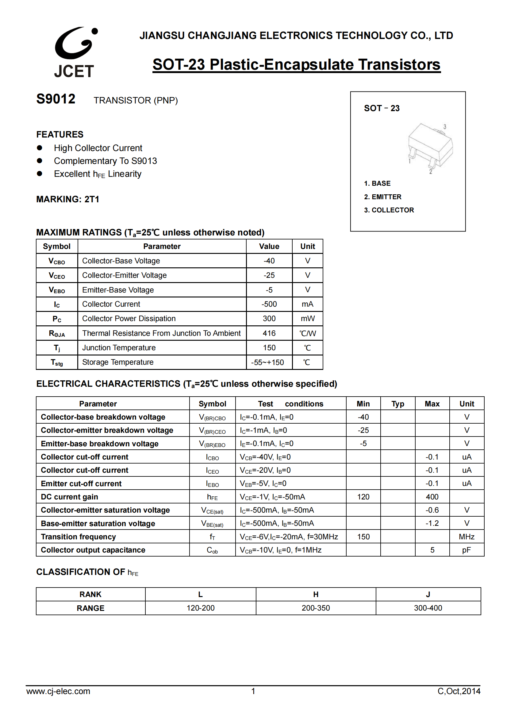 直流电流增益(hFE@Ic,Vce):120@50mA,1V