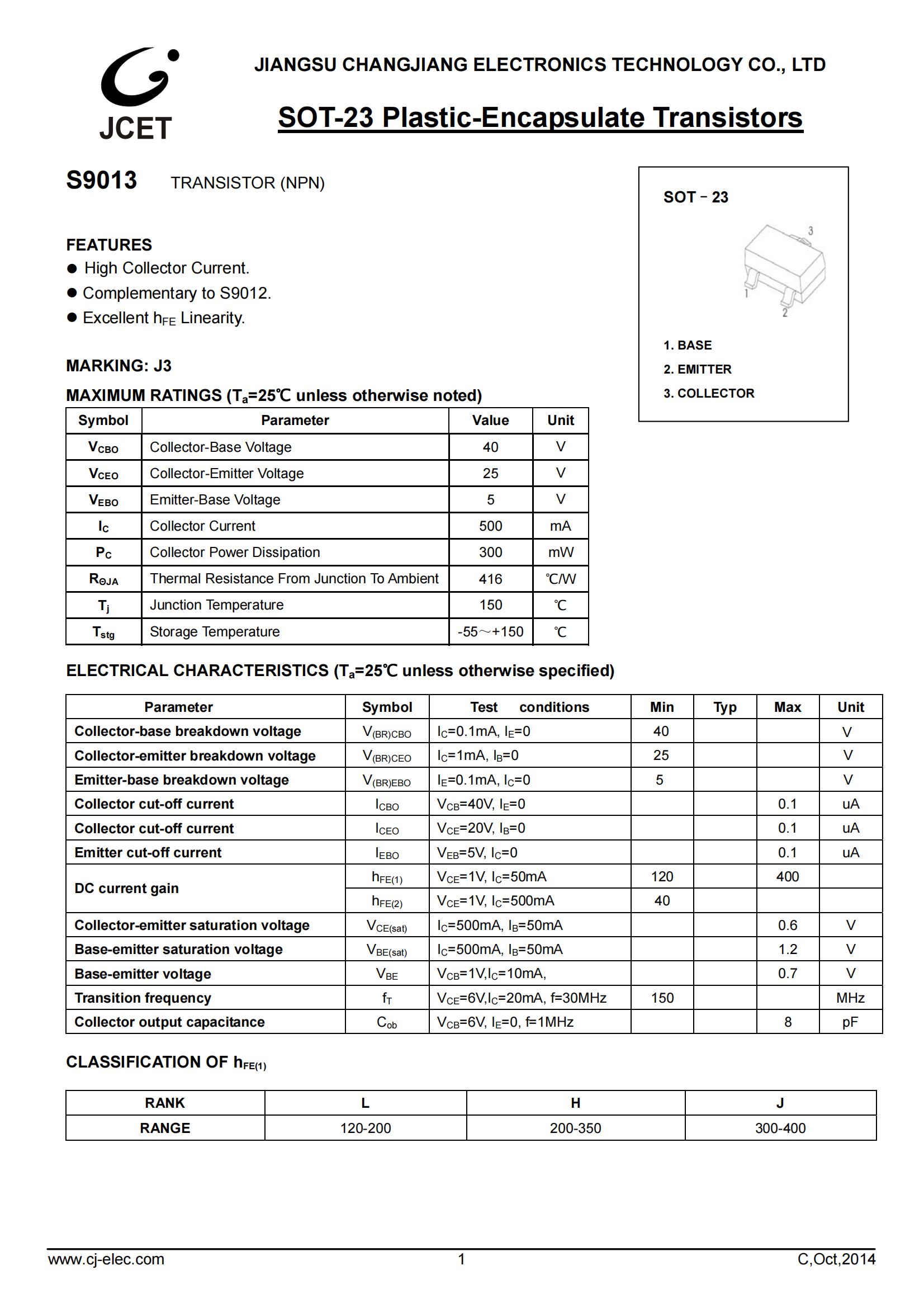 直流电流增益(hFE@Ic,Vce):120@50mA,1V
